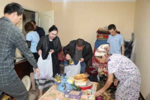 Qaraqalpaq mámleketlik jas tamashagóyler teatrı direktorı A.Sharipov, diretor orınbasarı Sh.Paxratdinova, teatr profkomı M.Kuldasova hám Qaraqalpaqstan Respublikası mádeniyat ministrligi bas qaniygesi Íqlas Mambetnazarovlar menen birgelikte Nókis qalasınan biriktirilgen jaslar dizimindegi Ídrisov Axmet-ali Muratbaevich penen ushırasıw ótkerip hám onıń shańaraǵına teatr jámááti atınan azıqlıq ónimleri jetkizildi.