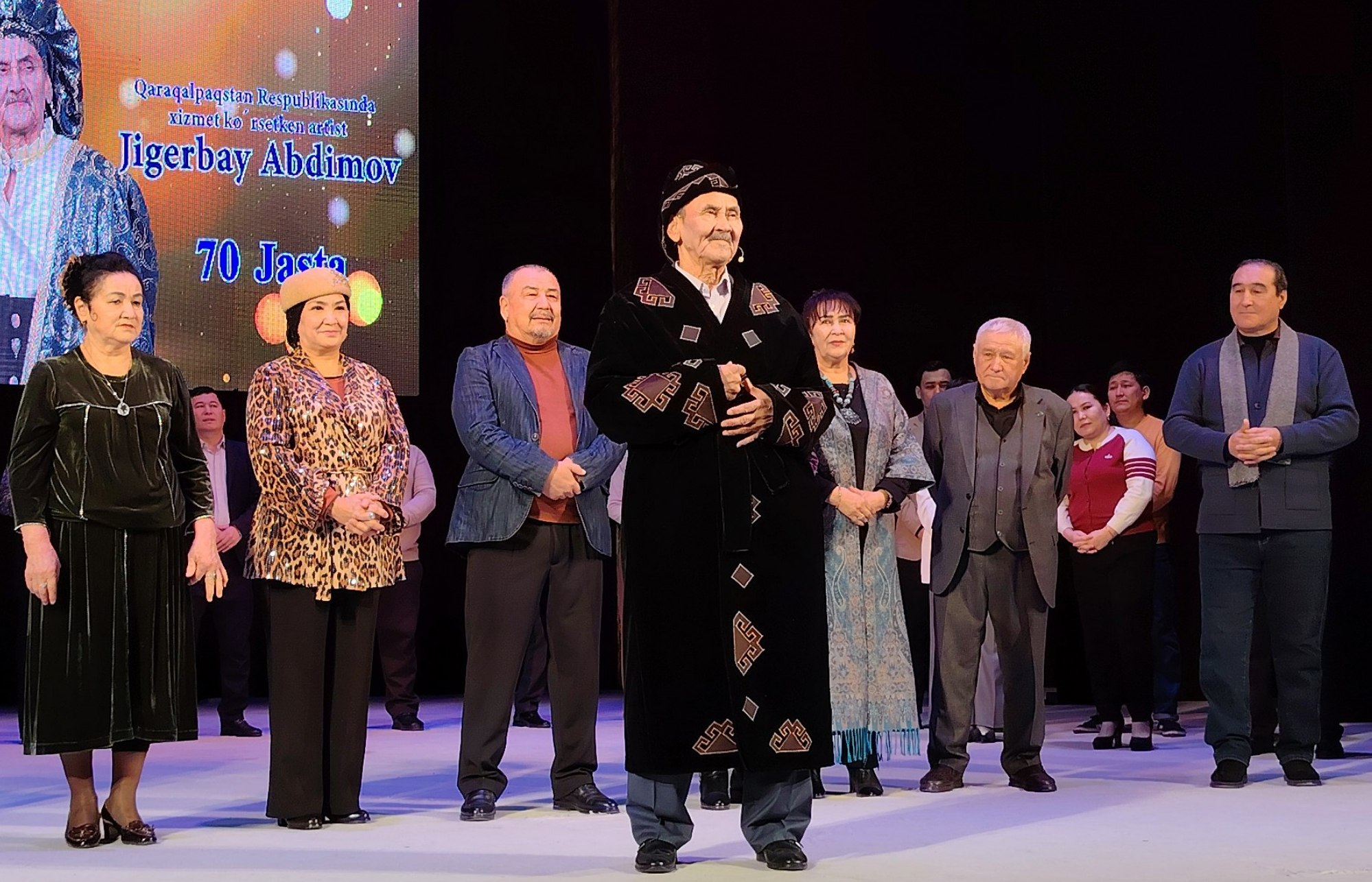 🎭Qoraqalpoq davlat yosh tomoshabinlar teatrining ustoz aktyori, Qoraqalpog‘istonda xizmat ko‘rsatgan artist Jigerbay Abdimovning 70 yillik yubiley kechasi keng nishonlandi.